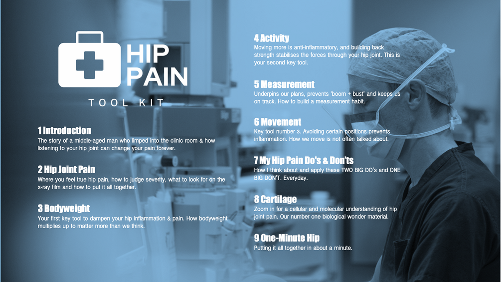 By the end you will understand and be able to use the key tools to do more with less hip pain.