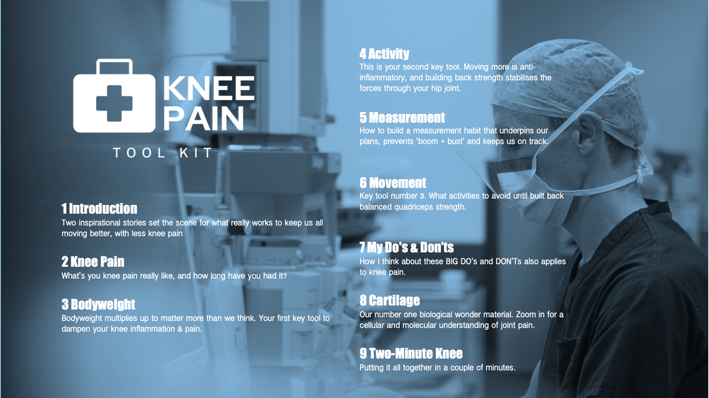 By the end you will understand and be able to use the key tools to do more with less knee pain.